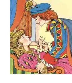 Quando as três fadas, que já haviam regressado ao bosque, souberam do sucedido, resolveram encantar o castelo. Todos adormeceram nos lugares onde estavam, o rei, os músicos, os cortesão, os criados, até o bobo da corte e as aias e os cavaleiros! O tempo ali como que parou.