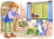 O rapaz ficou muito espantado e obedecendo ao pedido do gato no dia seguinte, lá foi comprar um saco e umas botas.