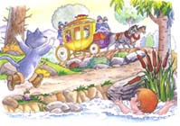 O gato desata então a correr à frente da carruagem. Pela estrada fora, sempre que via alguém a trabalhar nos campos, pedia-lhes que dissessem que trabalhavam para o marquês de Carabás.