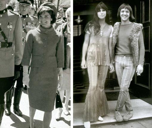 de Jacqueline Kennedy à moda unisex de Sonny e Cher.