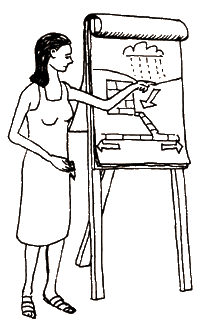 O McGraw-Hill Laboratory of Advertising Performance afirma que, quando os anunciantes usam ilustrações, sua capacidade de estimular os leitores a entrarem em ação aumenta em 26 por cento. Tenha em mente que os recursos visuais não devem nunca distrair a atenção da sua mensagem verbal. Por exemplo, desligue o projetor ligado ao seu notebook ou o retroprojetor quando não houver nenhuma imagem na tela (ou quando você precisar permanecer muito tempo em um único slide ou transparência), para que a platéia não seja distraída pela luz branca projetada na parede ou por uma imagem estática. Alguns conselhos podem ser valiosos nesse caso. Em Effective Presentation, Anthony Jay cita os sete erros comuns cometidos quando os apresentadores utilizam projeção de slides ou transparências. Os slides e transparências: 1.