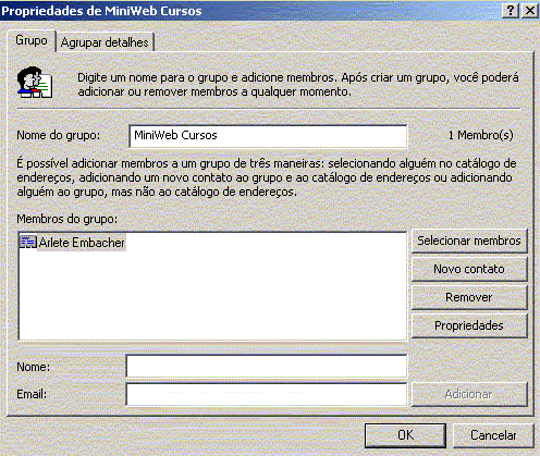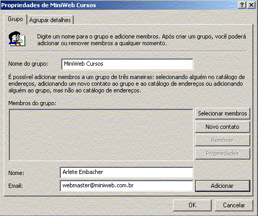 curso. Exemplo: Arlete Embacher e-mail webmaster@miniweb.com.br 3- Clique em