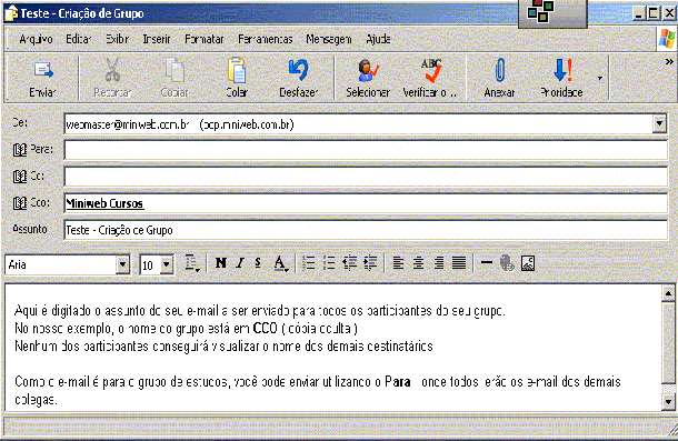 a tarefa é hora de enviar o e-mail para o seu grupo criado. O procedimento